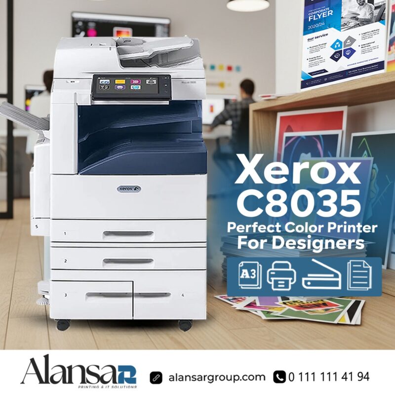 ومع الطابعة الالوان Xerox C8035 بتديك دقة ألوان خرافية ووضوح في الخطوط يخليك تشوف كل تفصيلة من تصميمك باعلي دقة 🌈